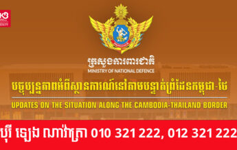 ក្រសួងការពារជាតិ បង្ហាញបច្ចុប្បន្នភាពអំពីស្ថានការណ៍នៅតាមបន្ទាត់ព្រំដែនកម្ពុជា-ថៃ ពាក់ព័ន្ធករណីកងកម្លាំងយោធាថៃបន្តបាញ់ប្រហារ និងឈ្លានពានមកលើដែនអធិបតេយ្យកម្ពុជា