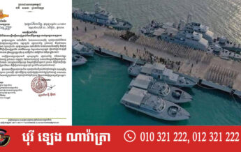កងទ័ពជើងទឹកកម្ពុជា នឹងធ្វើការហ្វឹកហ្វឺនបាញ់គ្រាប់ពិតលើផ្ទៃសមុទ្រ ចន្លោះកោះពូលូវ៉ៃ និងកោះតាង នាសប្តាហ៍ក្រោយ