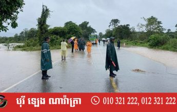 ផ្អាកចរាចរបណ្តោះអាសន្ន នៅលើផ្លូវជាតិលេខ៤ ចំណុច​ស្ពាន​ស្ទឹង​សំរោង ដោយ​សារ​ជំនន់​ទឹកភ្លៀង