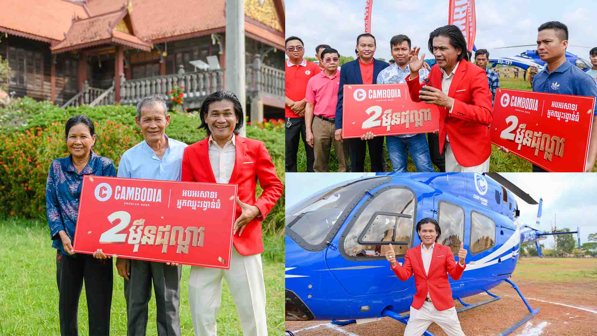 យកឧទ្ធម្ភាគចក្រទៅយកអ្នកឈ្នះ ២ម៉ឺនដុល្លារពី CAMBODIA BEER នៅខេត្តស្វាយរៀង តែនាយ ពាក់មី បង្ហួសទៅឌុបឪពុកម្ដាយឡើងផ្អើល