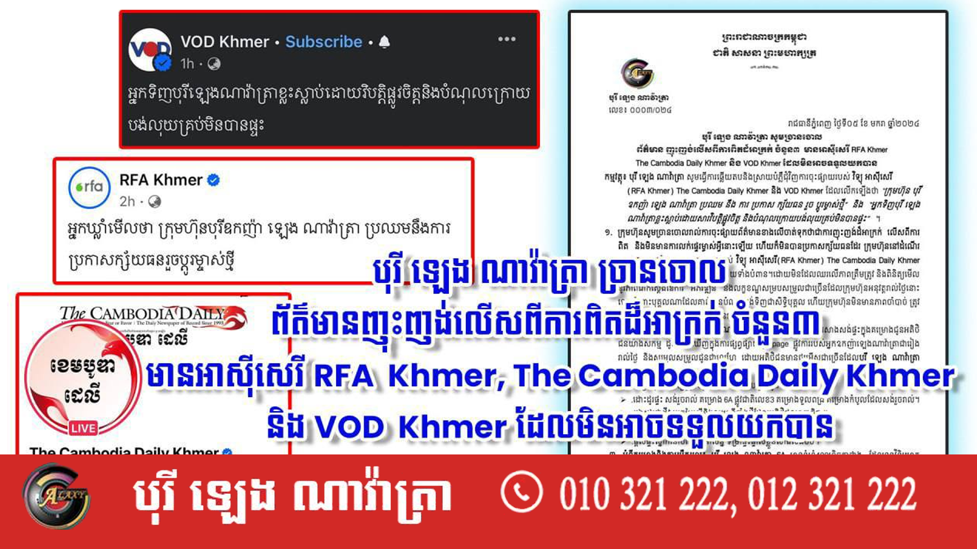 បុរី ឡេងណាវ៉ាត្រា ច្រានចោលព័ត៌មានញុះញង់លើសការពិតដ៍អាក្រក់ចំនួន៣  មានអាស៊ីសេរី RFA the cambodia daily khmer និង VOD ដែលមិនអាចទទួលយកបាន