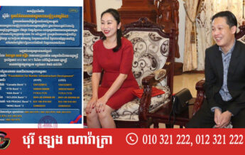 ឧកញ៉ា ឡាយ លីហួ និងលោកជំទាវ ឡៃ ស៊ូយៀក សមាជិកសមាគមឧកញ៉ាកម្ពុជា ចូលរួមបរិច្ចាគថវិកា ១០០លានរៀល ដល់ «មូលនិធិកសាងហេដ្ឋារចនាសម្ព័ន្ធតាមព្រំដែន»