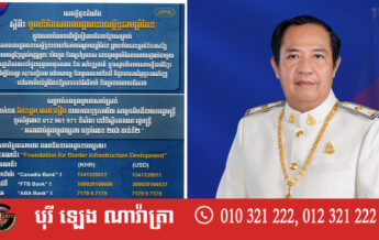 ក្រុមហ៊ុន ប៉េង ហួត គ្រុប បរិច្ចាគថវិកា ៥០ម៉ឺនដុល្លារដល់ «មូលនិធិកសាងហេដ្ឋារចនាសម្ព័ន្ធតាមព្រំដែន» ដោយផ្ដោតលើការកសាងផ្លូវក្រវាត់ព្រំដែន