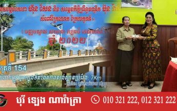 លោកជំទាវ ហ៊ុន ស៊ីណាត និងក្រុមគ្រួសារ ជ្រះថ្លាចូលបច្ច័យ ២០លានរៀល កសាងស្ពានឆ្លងស្ទឹងសែនមួយកន្លែង
