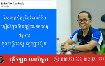 ក្រុមហ៊ុនផលិតសំបកកង់ខ្មែរ Sailun គ្រោងនឹងសម្រួលតម្លៃថ្មីនិងផ្ដល់ប្រូម៉ូសិនពិសេស ដើម្បីលើកទឹកចិត្តអ្នកប្រើប្រាស់នៅកម្ពុជា