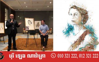 វិចិត្រករគំនូរប្រើទឹកតែ ត្រៀមគូសរូបម្ចាស់ក្សត្រី គ្រងរាជ្យយូរបំផុតក្នុងប្រវត្តិសាស្ត្រអង់គ្លេស នៅសណ្ឋារគារ ហៃយ៉ាត់ រីជិនស៊ី ភ្នំពេញ