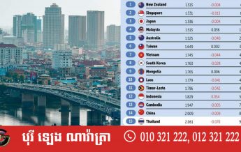 កម្ពុជាឈរខ្ពស់ជាងចិន និងថៃ ជាប្រទេសមានសន្តិភាពបំផុតប្រចាំតំបន់អាស៊ីប៉ាស៊ីហ្វិក