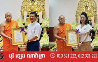 អ្នកឧកញ៉ា ទ្រី ភាព និងភរិយា ទទួលបានគោរមងារពីគណៈសង្ឃពុទ្ធសាសនាកម្ពុជា