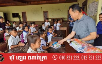 ក្រុមហ៊ុនអ្នកឧកញ៉ា ទ្រី ភាព ចែកអំណោយជូនកូនៗរបស់កម្មករ នៅតំបន់ជនបទ ចំនួន១៤០នាក់