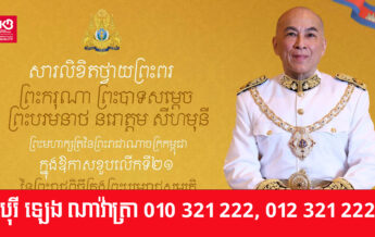 អ្នកឧកញ៉ា ឡេង ណាវ៉ាត្រា និងលោកជំទាវ សូមព្រះបរមរាជានុញ្ញាត ផ្ញើសារថ្វាយព្រះពរព្រះមហាក្សត្រ ក្នុងឱកាសខួបលើកទី២១ នៃព្រះរាជពិធីគ្រងព្រះបរមរាជសម្បត្តិ