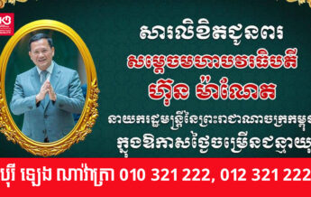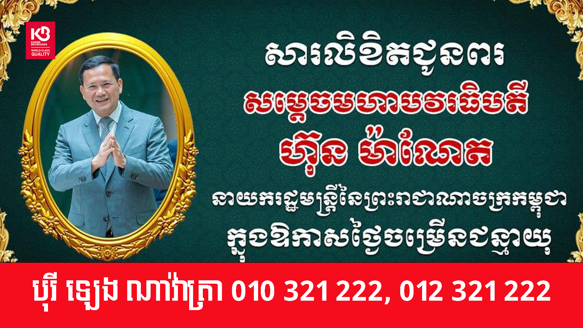 លោកឧកញ៉ា សុន ដារ៉ាវុធ និងលោកជំទាវ ផ្ញើសារលិខិតជូនពរ សម្តេចមហាបវរធិបតី ហ៊ុន ម៉ាណែត ក្នុងឱកាសខួបកំណើតគម្រប់ ៤៨ ឈានចូល ៤៩ឆ្នាំ