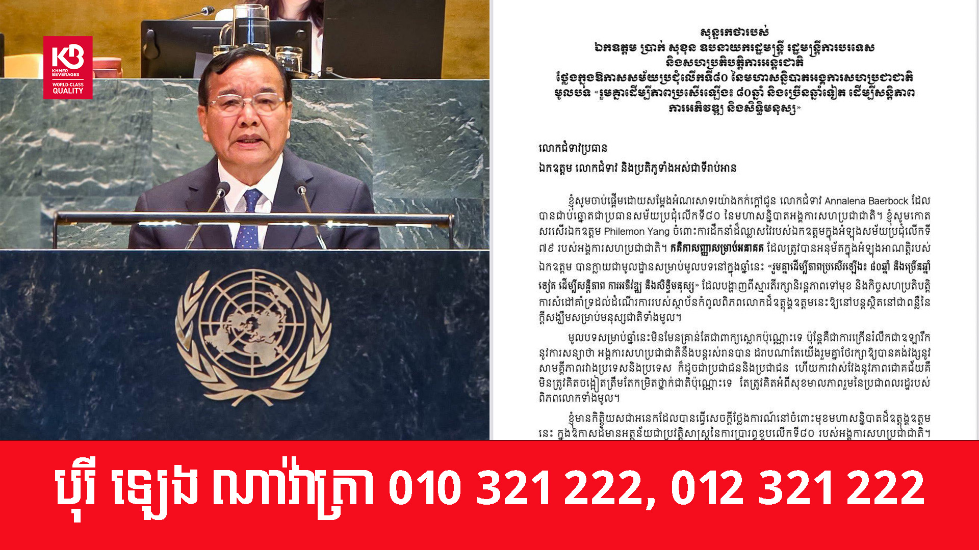 ថ្លែងលើឆាកអន្តរជាតិ! ឧបនាយករដ្ឋមន្ត្រី ប្រាក់ សុខុន អំពាវនាវដល់ថ្នាក់ដឹកនាំជុំវិញពិភពលោក ជួយដោះស្រាយភាពតានតឹង និងដោះស្រាយជម្លោះដោយសន្តិវិធី រវាងកម្ពុជា-ថៃ