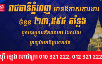 ឱកាសការងារជិត៣ម៉ឺនកន្លែងនៅរាជធានីភ្នំពេញ សម្រាប់បងប្អូនប្រជាពលរដ្ឋ ជាពិសេសអតីតពលករខ្មែរដែលវិលត្រឡប់ពីថៃ មកដាក់ពាក្យធ្វើការ