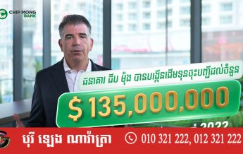 ធនាគារ ជីប ម៉ុង បង្កើនដើមទុនចុះបញ្ជីដល់ចំនួន ១៣៥លានដុល្លារក្នុងពាក់កណ្ដាលឆ្នាំ២០២២