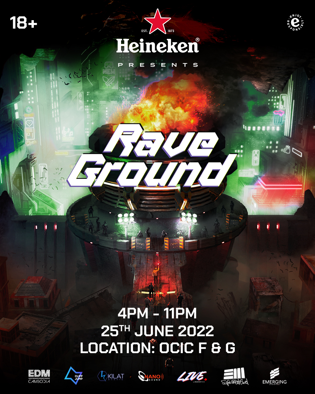 ស្រាបៀរ Heineken® នាំមកជូននូវការប្រគុំតន្ដ្រី Raveground ព្រឹត្តិការណ៍តន្ត្រីអេឡិចត្រូនិកដ៏ធំបំផុតរបស់កម្ពុជា បានត្រលប់មកវិញ និងសន្យាផ្ដល់ជូននូវបទពិសោធន៍ដ៏ប្លែកអស្ចារ្យ!