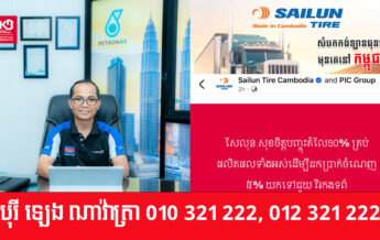 ក្រុមហ៊ុនផលិតសំបកកង់ខ្មែរ Sailun ប្រកាសតម្លៃថ្មីចុះថ្លៃចន្លោះពី ១០-២០ដុល្លារក្នុងមួយគ្រាប់ លក់ជូនអ្នកប្រើប្រាស់នៅកម្ពុជា