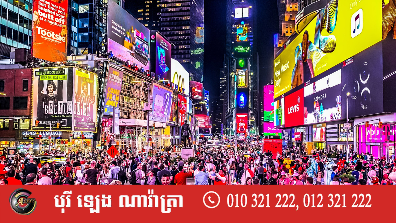 តំបន់ Time Square ក្នុងទីក្រុងញូយ៉ក ជាកន្លែងទាក់ទាញទេសចរណ៍បំផុតរបស់ពិភពលោក