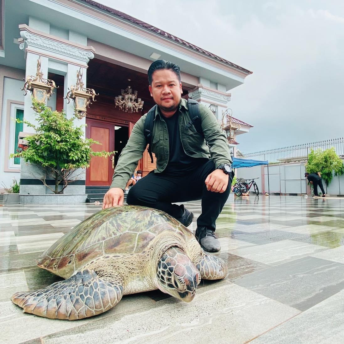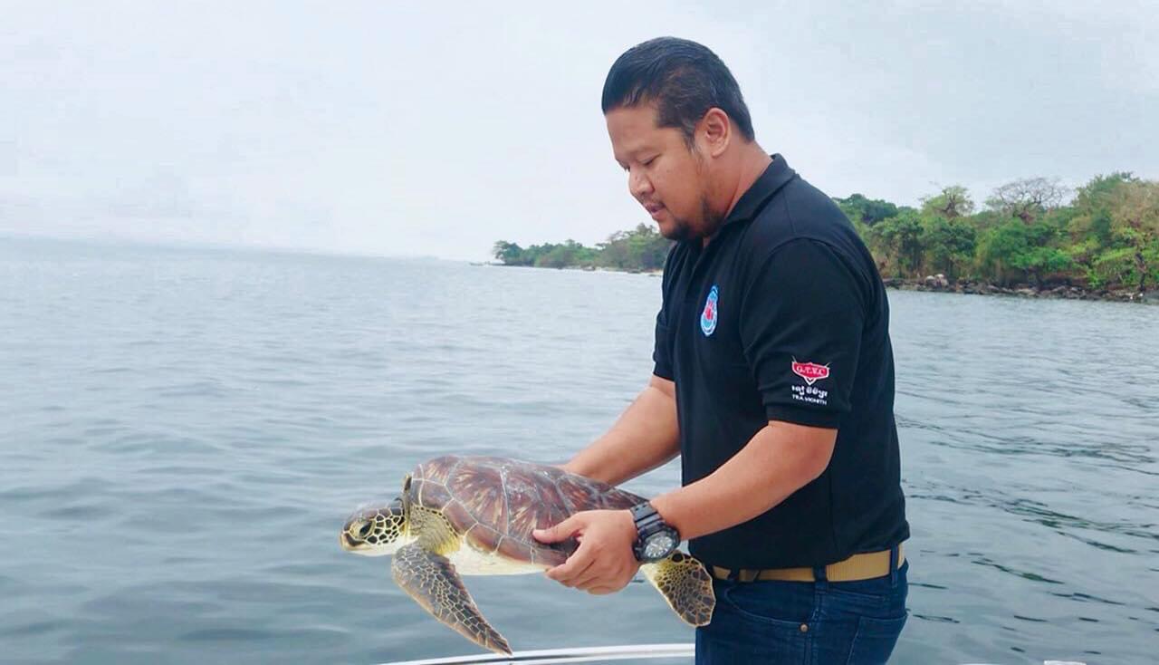 រូបភាពមួយសន្លឹកទិដ្ឋភាពទូកនេសាទលិចក្បែរច្រាំងនៃឆ្នេរសមុទ្រ អមដោយរូបលោកឧកញ៉ាចិត្តធម៌សប្បុរស ទៀ វិចិត្រ ដែលមនុស្សគ្រប់ស្គាល់លោក តាមរយៈការធ្វើមនុស្សធម៌ចែកទានដល់ជនក្រីក្រ និងតែងតែឃើញលោក ទិញសត្វពីអ្នកនេសាទ និងក្រុមបបាញ់សត្វ លោកឧកញ៉ាឃើញដឹងលឺតែង ទិញយកទៅប្រលែង សត្វព្រៃ និងអភិរក្សសត្វសមុទ្រកម្ពុជាជាច្រើនកន្លងមក។