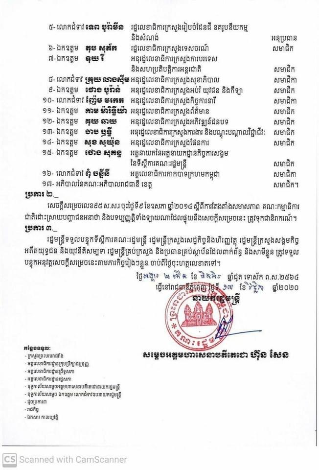 រាជរដ្ឋាភិបាល សម្តេចតេជោ ហ៊ុន សែន នាយករដ្ឋមន្ត្រីនៃកម្ពុជា បានចេញសេចក្តីសម្រេចថ្មីមួយ ស្តីពីការតែងតាំងសមាសភាព គណៈកម្មាធិការជាតិដោះស្រាយបញ្ហាជនអនាថា។