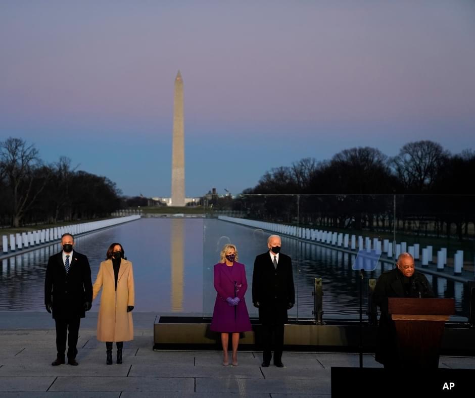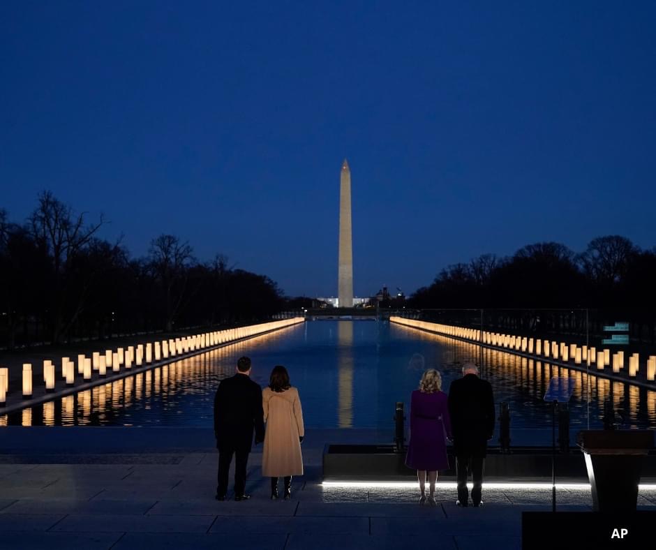 ​លោក Joe Biden និង​អ្នកស្រី Kamala Harris បានអញ្ជើញគោរព​វិញ្ញាណក្ខន្ធ​ពលរដ្ឋ​អាមេរិកាំង​ចំនួន​ ៤​សែន​នាក់ ​ដែល​បាន​ស្លាប់​ដោយសារ​ជំងឺ​កូវីដ១៩​ ​នៅល្ងាច​ថ្ងៃ​អង្គារ​​ ម៉ោងនៅ​រដ្ឋធានី​វ៉ាស៊ីនតោន មុនពេលអ្នកទាំងពីរស្បថចូលកាន់តំណែងនាថ្ងៃស្អែក។